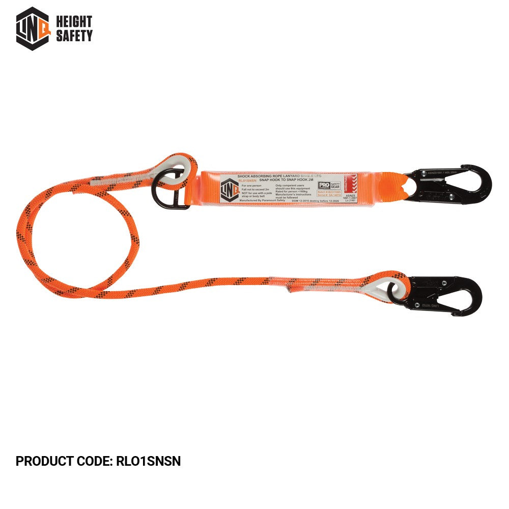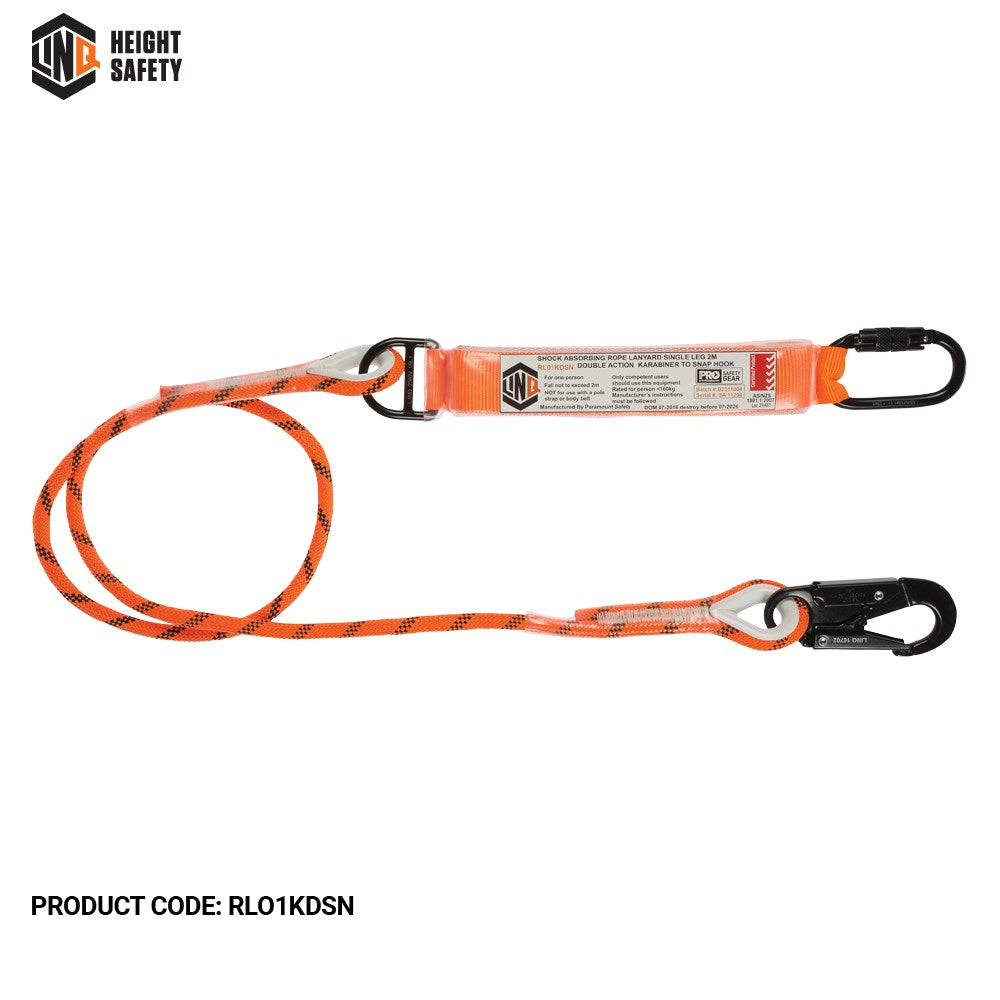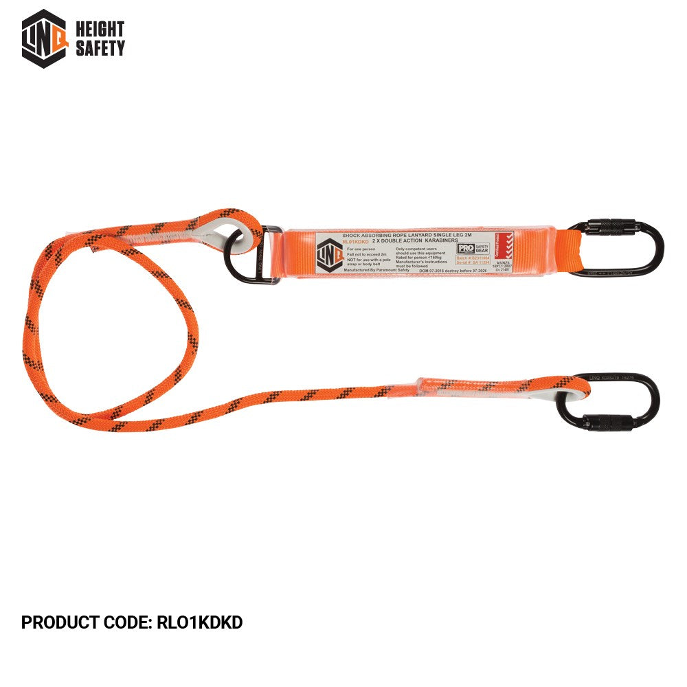Linq Height Safety Single Leg 2m Shock Absorb Adjustable Rope Lanyard - Plus Hardware