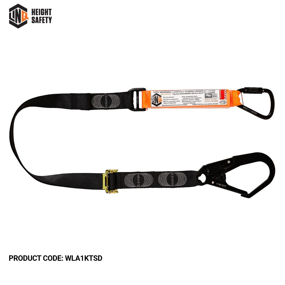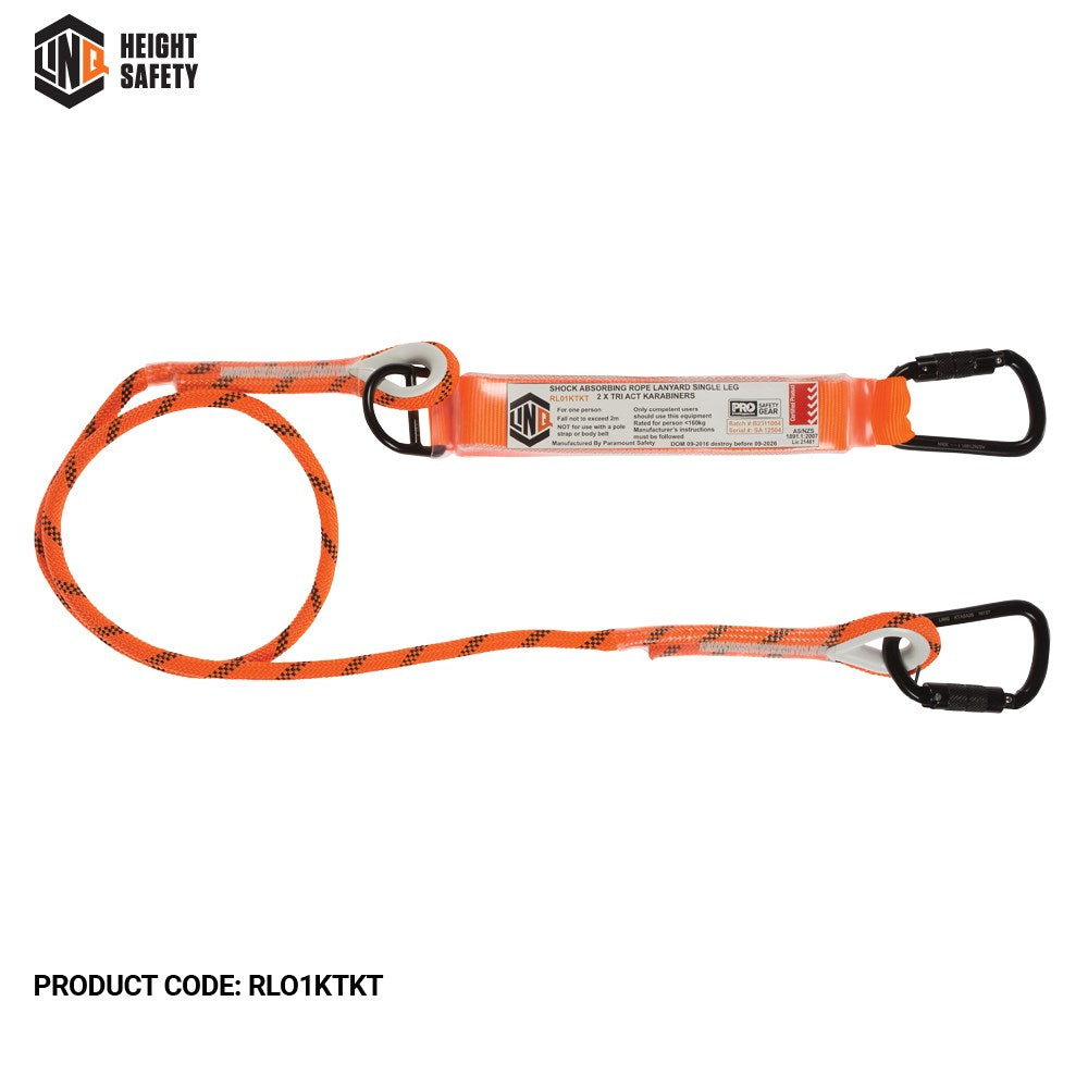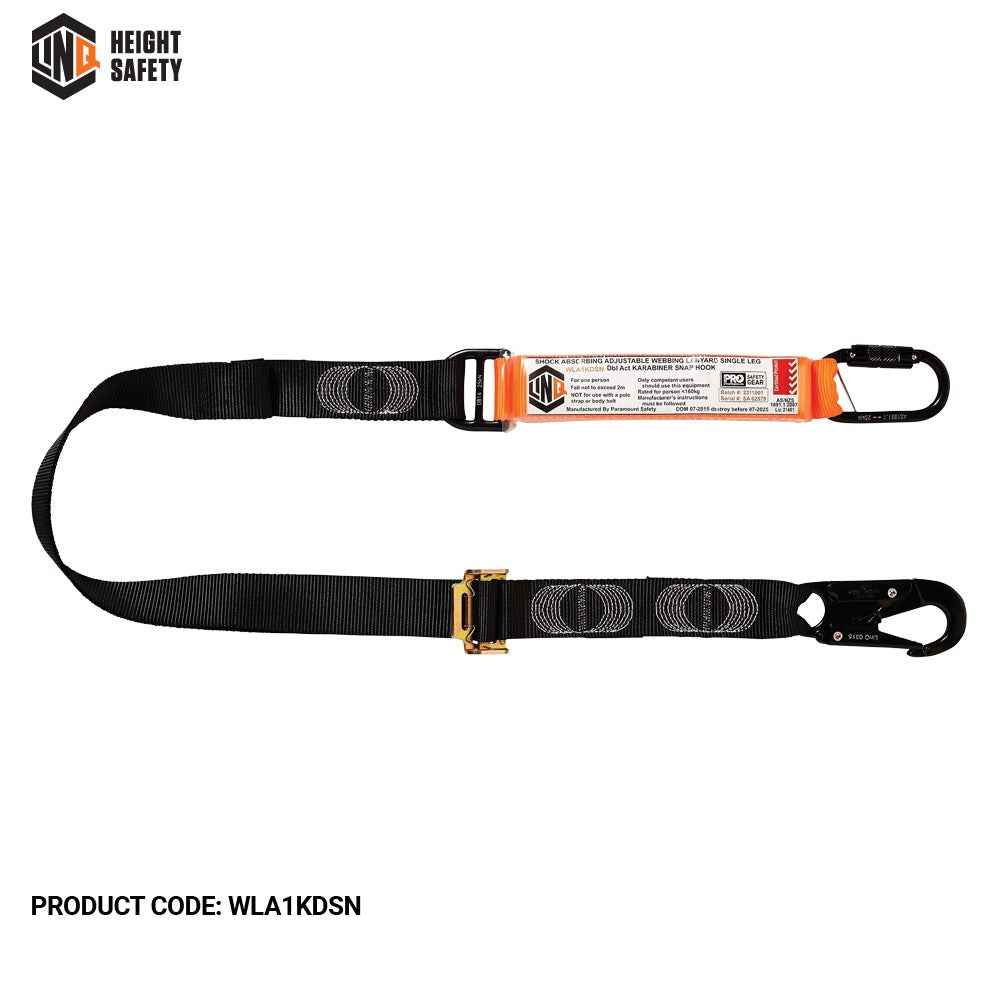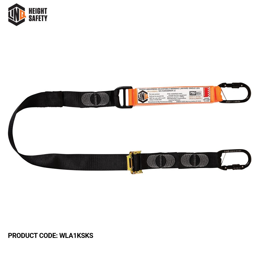 Linq Height Safety Single Leg 2m Shock Absorb Adjustable Rope Lanyard - Plus Hardware