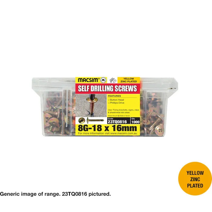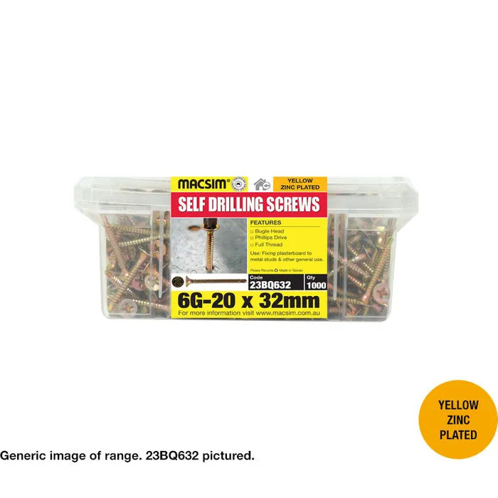 Macsim Pan Head Self Drilling Phillips Drive Yellow Zinc Screws - gauge x length - Box of 1000