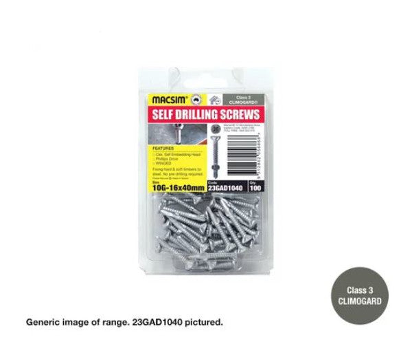 Macsim Countersunk Self Drilling FULLY THREADED Galvanised Screws - gauge x length x drive x box quantity