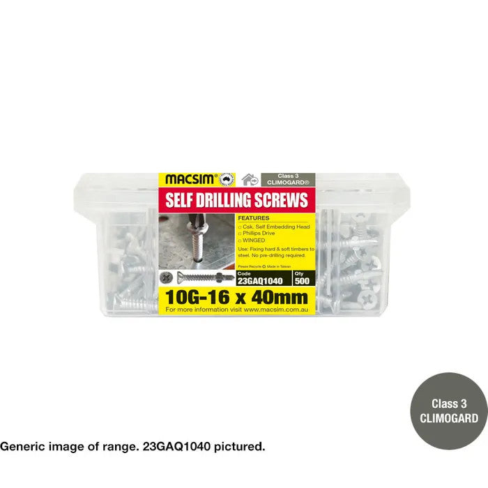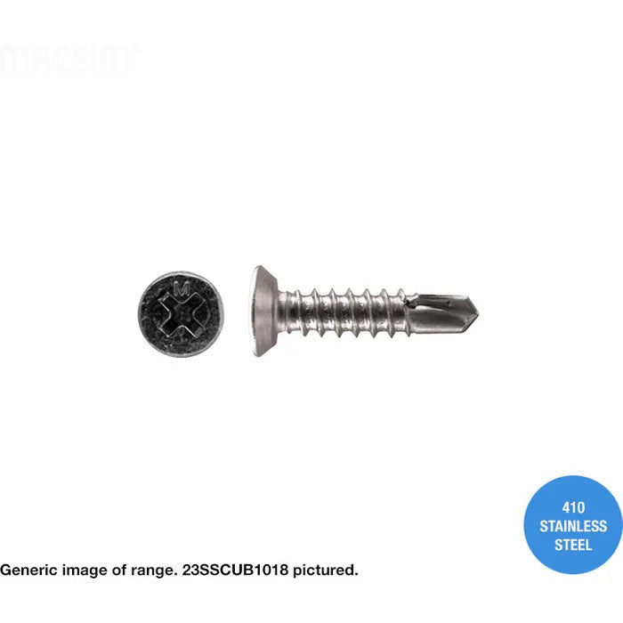 Macsim Countersunk UNDER CUT Self Drilling Screws 410 Stainless Steel - 10g x length - Box of 1000