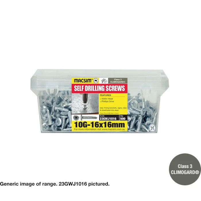 Macsim Wafer Head Self Drilling Phillips Drive Galvanised Screws -gauge x length x box quantity