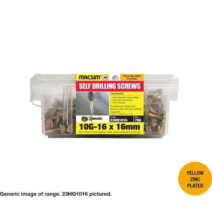 Macsim Hex Washer Face Self Drilling Screws Yellow Zinc - gauge x length x box quantity