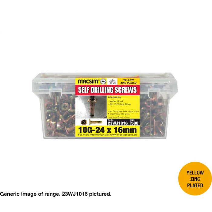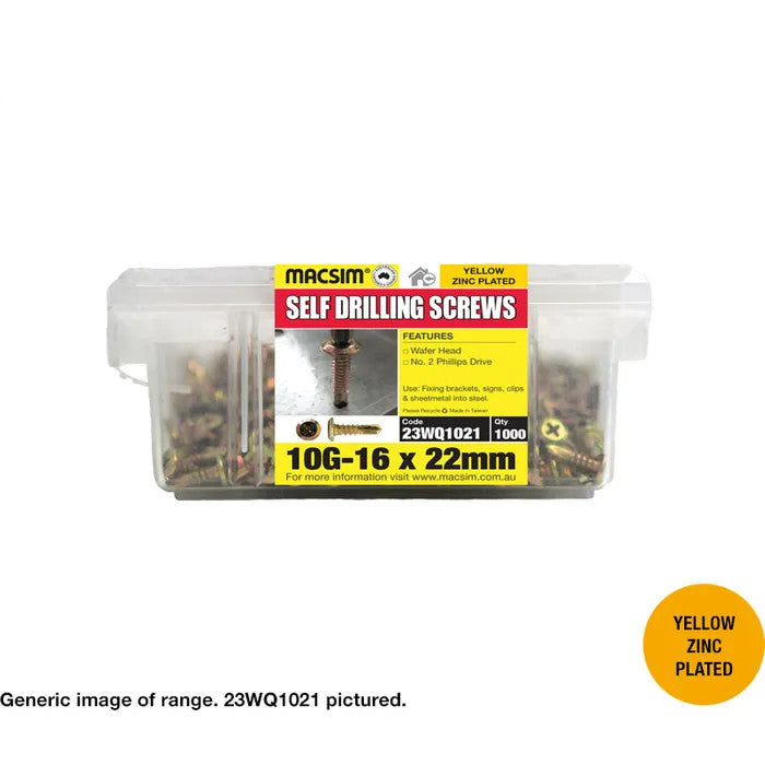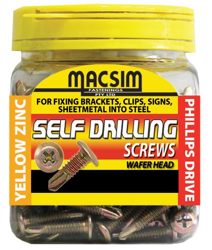 Macsim Wafer Head Self Drilling Phillips Drive Yellow Zinc Screws – gauge x length x box quantity