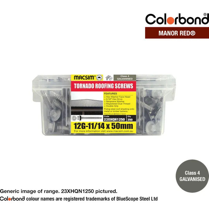 Self Drilling Galvanised Tornado Roofing Neoprene Washer Screw 12g x Length and Quantity - Painted Head Options