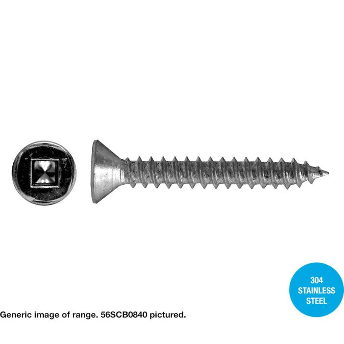 Macsim Countersunk Self Tapping Square Drive Screws 304 Stainless Steel - gauge x length - Box of 200