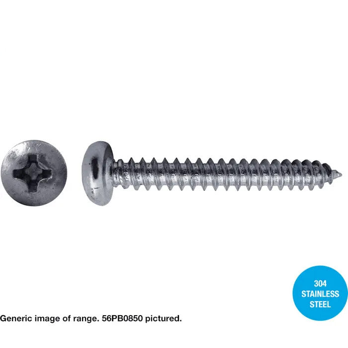 Macsim Pan Head Self Tapping Phillips Drive Screws 304 Stainless Steel - gauge x length - Box of 200