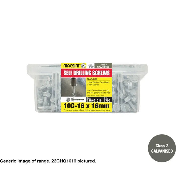 Macsim Hex Washer Face Self Drilling FINE THREAD galvanised Screws - gauge x length x box quantity