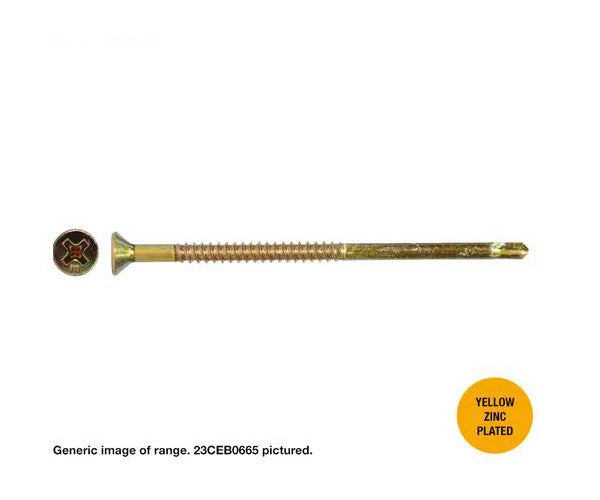 Macsim Countersunk EXTENDED POINT Yellow Zinc Self Drilling Screws - 6G x 65mm - Box of 1000