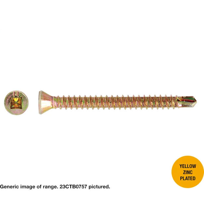 Macsim Countersunk TRIM HEAD Square drive Yellow Zinc Self Drilling Screw - gauge x length - Box of 1000