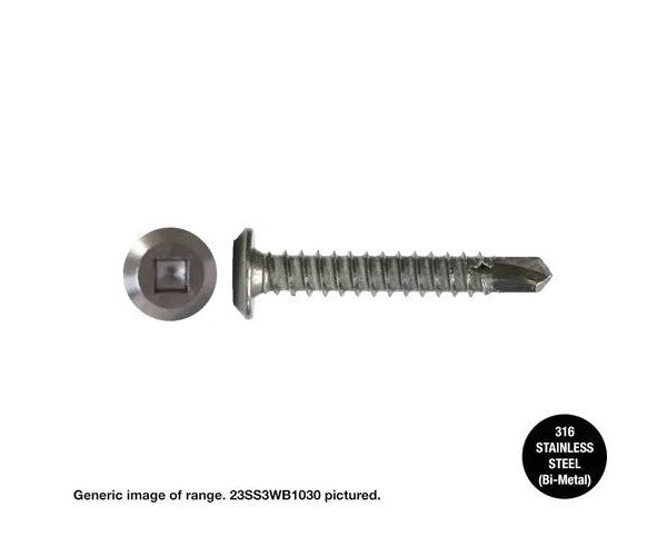 Macsim Wafer Head Self Drilling Square Drive Screws 316 Stainless Steel - 10G x length - Box of 1000