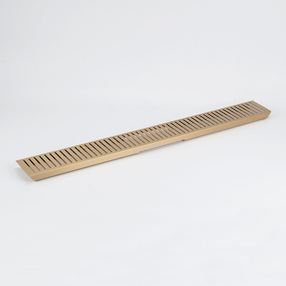 Radiant Brushed Gold Linear Slotted Floor Grate - 100mm x Length x Outlet Diameter