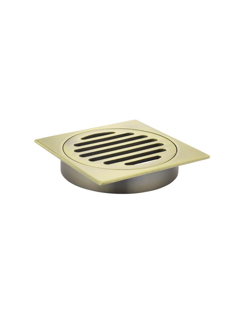 Radiant Brushed Gold Square Slotted Floor Grate 100mm x 100mm x Outlet Diameter