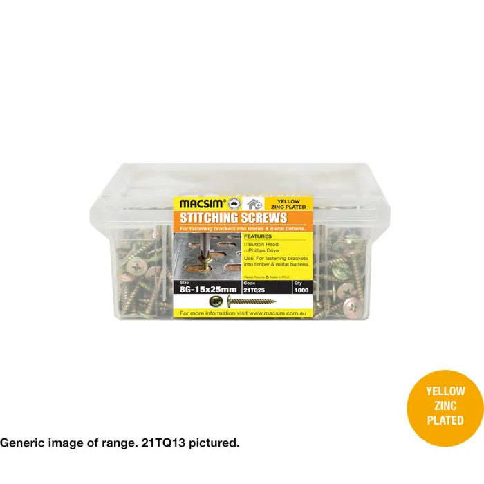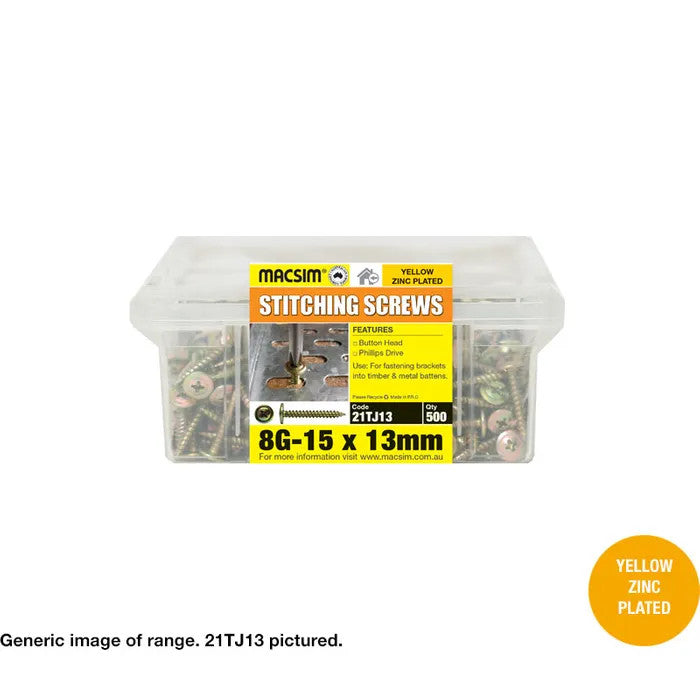 Macsim Pancake Head Yellow Zinc Stitching Screws - 8G x 18mm - Box of 1000