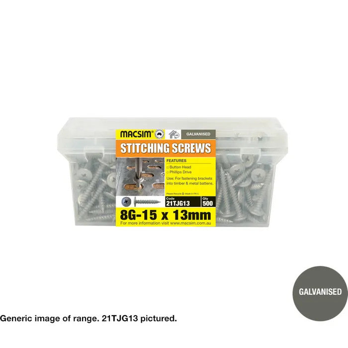Macsim Button Head Galvanised Stitching Screws - gauge x length x box quantity