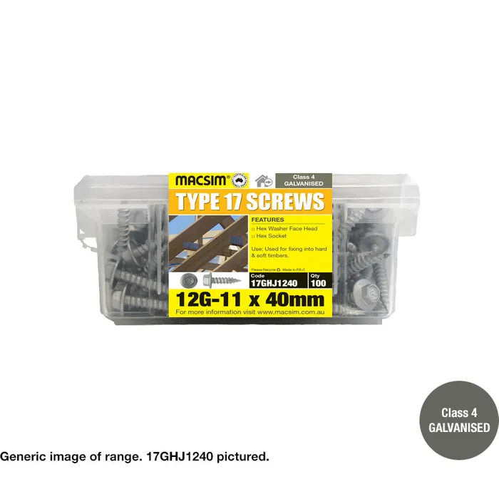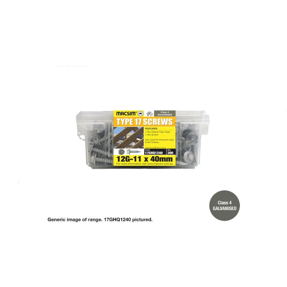 Macsim Type 17 Batten Hex Drive Galvanised screws - gauge x length x box quantity