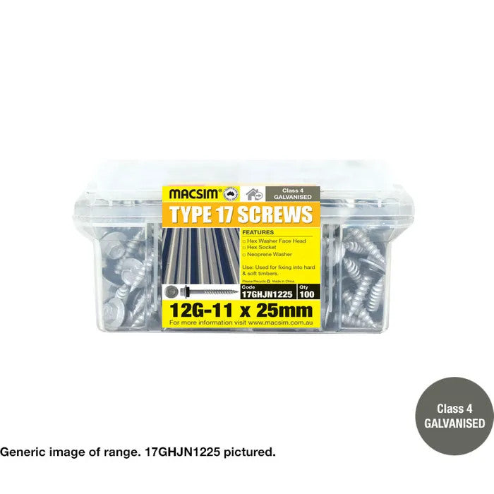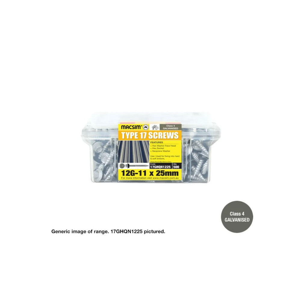 Type 17 Macsim Hex Head galvanised Screws - gauge x length x washer x box quantity