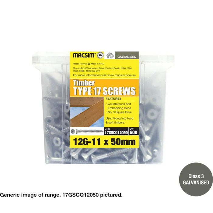 Macsim Type 17 Square Drive Galvanised decking screws - gauge x length x box quantity