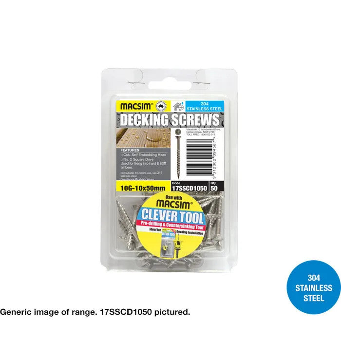 Macsim Type 17 Square Drive 304 Stainless Steel decking screws - gauge x length x box quantity