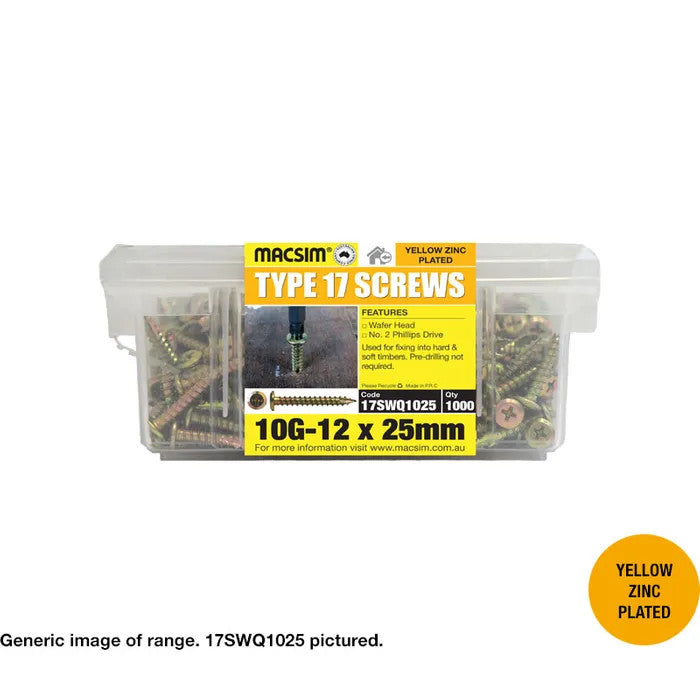 Macsim Type 17 Countersunk Head Yellow Zinc Screws - gauge x length x box quantity