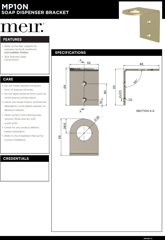 Meir Soap Dispenser Bottle Bracket - Various Colour Finishes