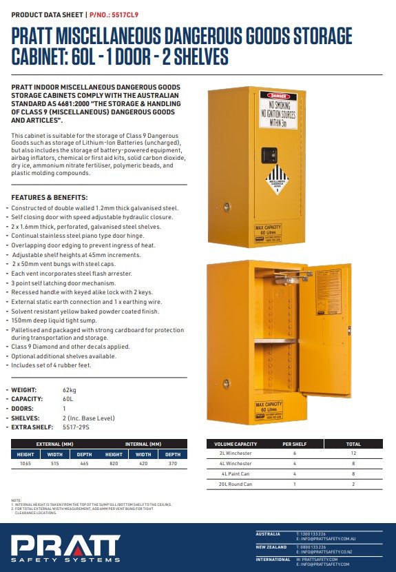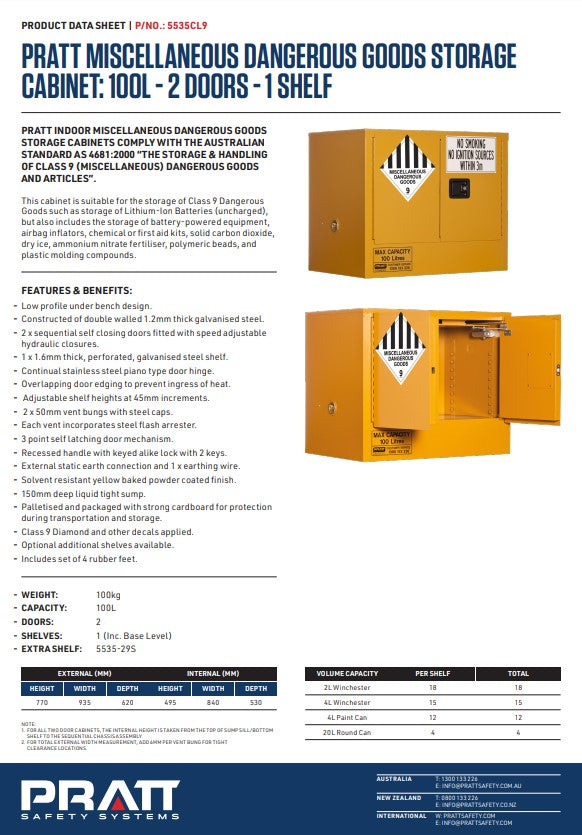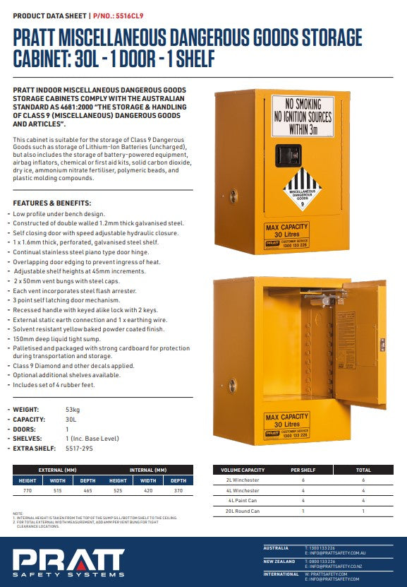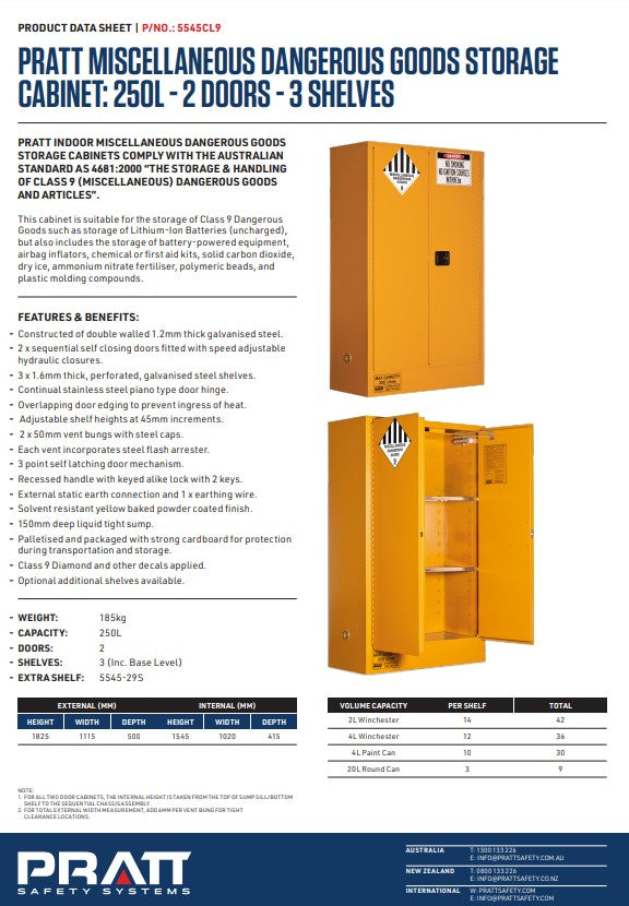 Pratt Class 9 Miscellaneous Dangerous Goods Storage Cabinets