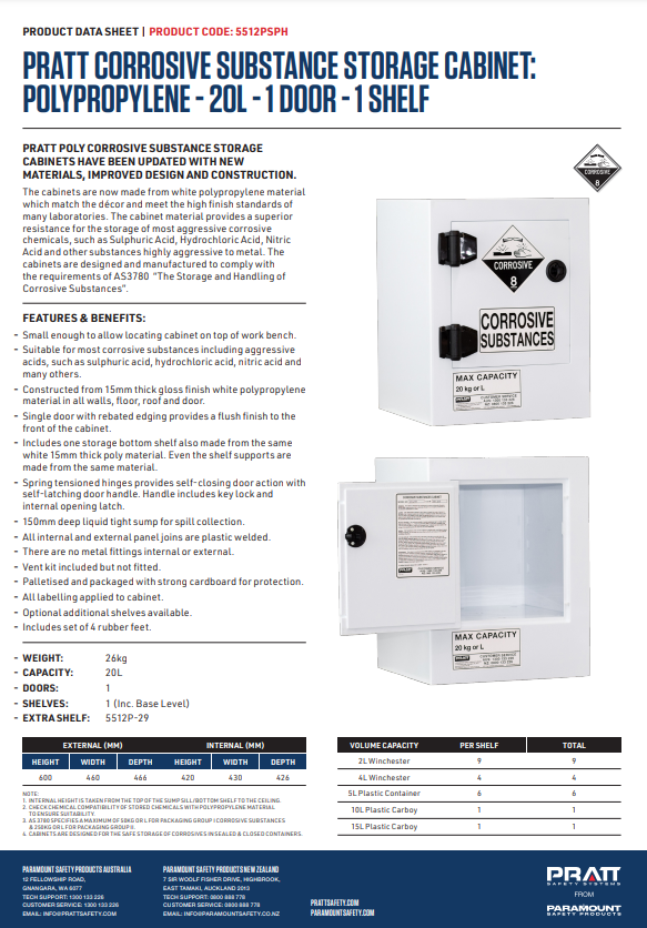 Pratt Class 8 Corrosive Substance Storage Cabinets - Polypropylene