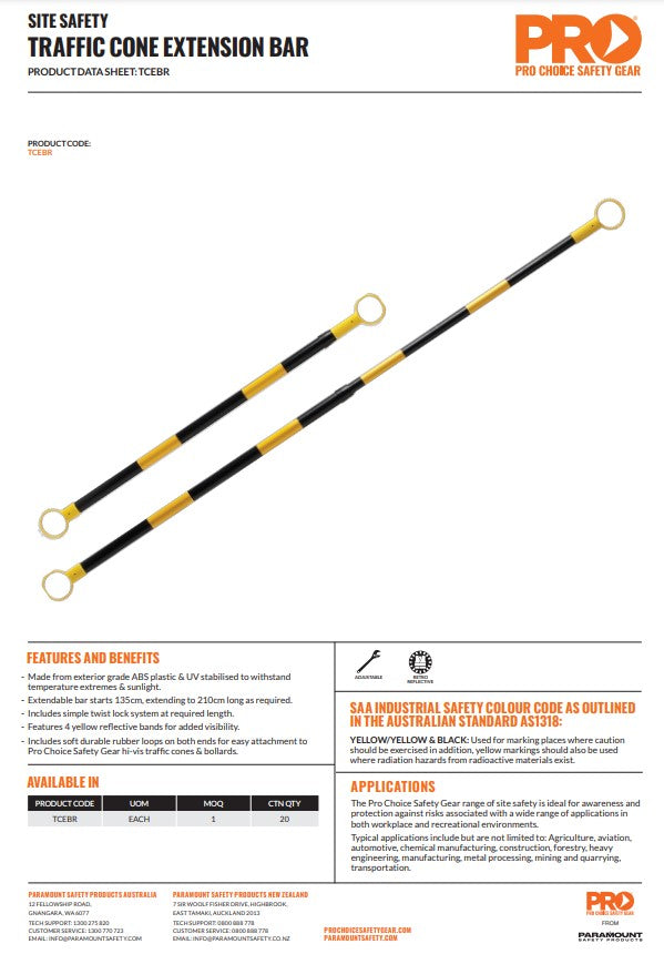 For added versatility, traffic cone extension bars enhance visibility in restricted areas, easily extending from 135cm to 210cm. Made from UV-stabilized ABS plastic, it withstands temperature extremes and sunlight, featuring a simple twist lock system for secure length adjustment.