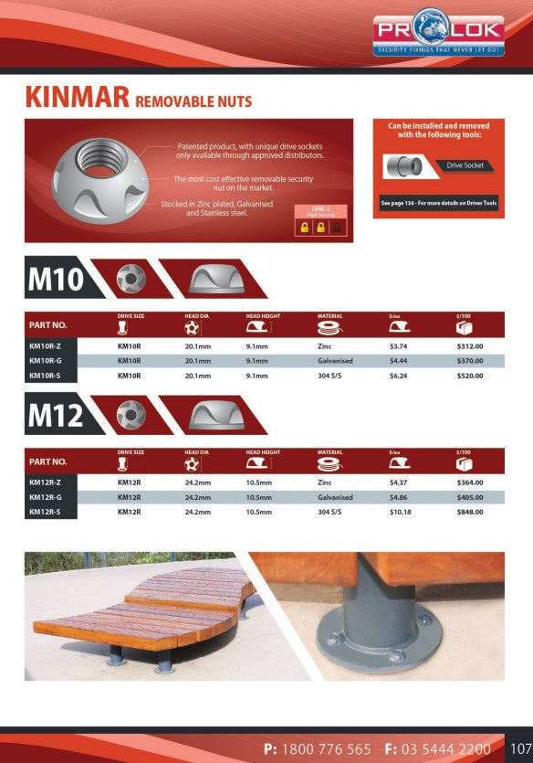 With options available in various materials, including stainless steel, galvanised, and zinc, these fasteners are built to withstand the toughest environments. Ideal for applications that demand stringent security measures, the Kinmar system ensures that your installations remain secure and tamper-proof.