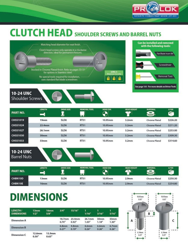 Clutch Head one way barrel nuts are designed to only operate in a clockwise direction, with serrations under the head to increase holding power