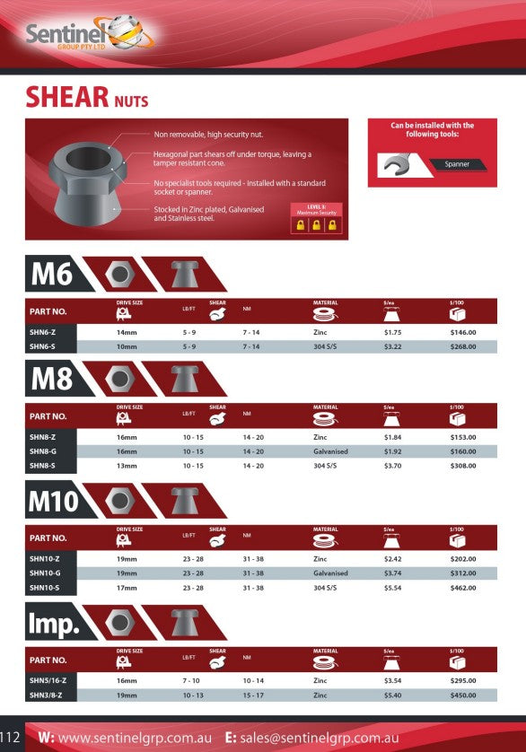 The Shear Nut offers a high-security solution for your fastening needs. Designed as a permanent bolt, this innovative product eliminates the need for specialist tooling; the hexagonal component shears off upon tightening, leaving a tamper-proof head with no recess. This feature not only enhances security but also simplifies installation with standard sockets or spanners.
