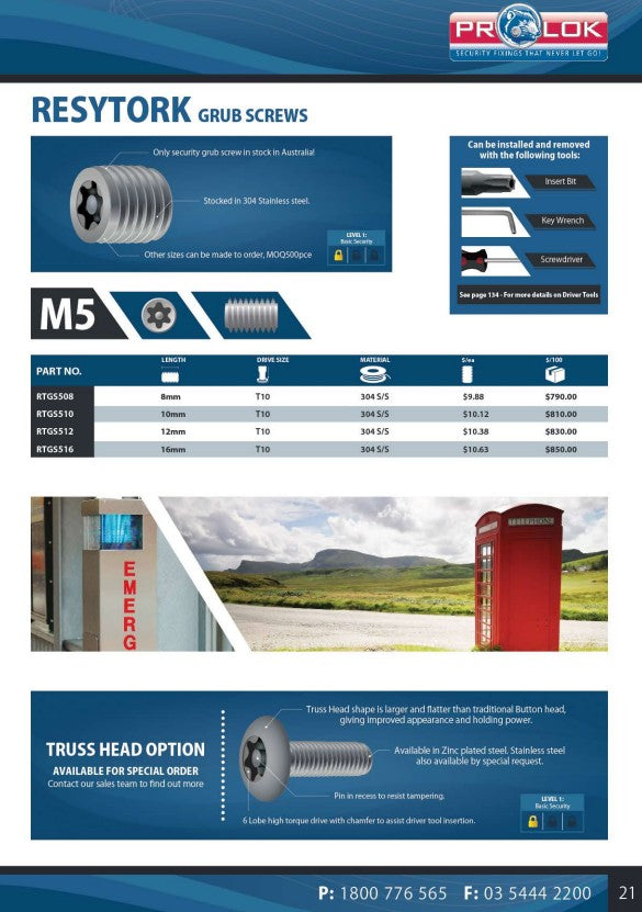Introducing the unique Resytork security range of screws, exclusively available through Prolok. Designed with a distinctive 6 Lobe Torx drive suitable for high torque applications.