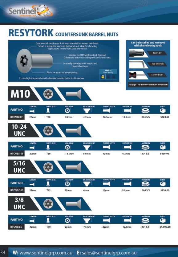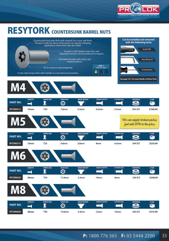 Introducing the unique Resytork security range of screws, exclusively available through Prolok. Designed with a distinctive 6 Lobe Torx drive suitable for high torque applications.