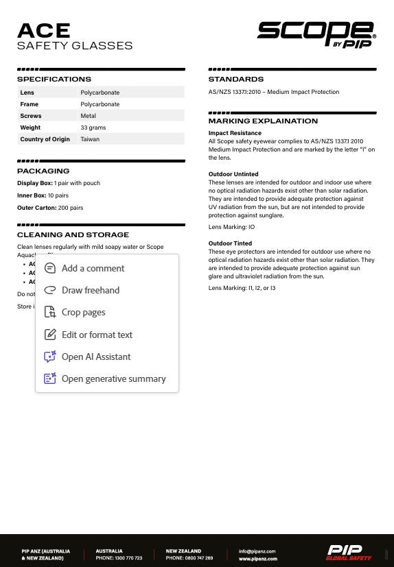 Engineered for versatility and protection, the Scope Ace delivers certified medium-impact safety performance in a contemporary design. Choose from six frame and lens combinations tailored to your environment—whether you're working indoors or outdoors. The lightweight construction and ergonomic frame geometry ensure comfort during extended wear, making it an ideal choice for professionals who refuse to compromise between safety standards and everyday wearability.