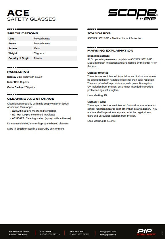 Engineered for versatility and protection, the Scope Ace delivers certified medium-impact safety performance in a contemporary design. Choose from six frame and lens combinations tailored to your environment—whether you're working indoors or outdoors. The lightweight construction and ergonomic frame geometry ensure comfort during extended wear, making it an ideal choice for professionals who refuse to compromise between safety standards and everyday wearability.