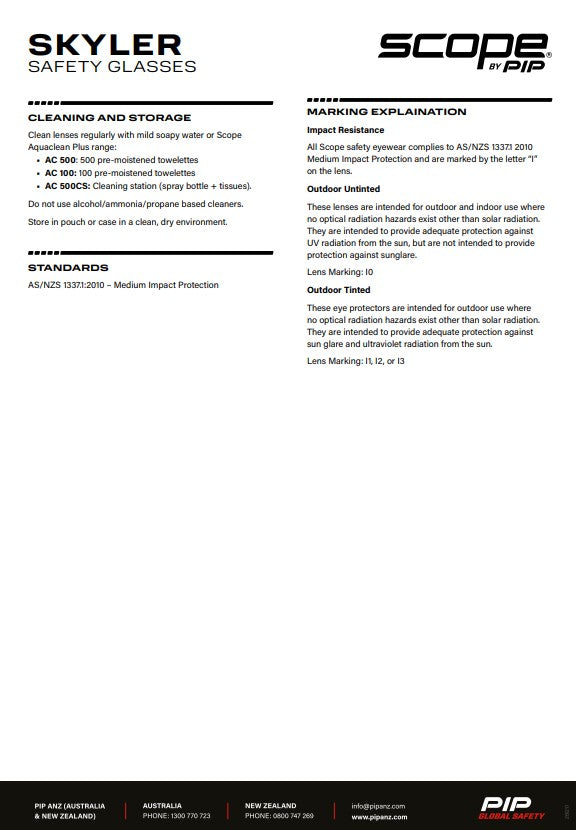 Scope Skyler Safety Glasses Black Frame - 2 Lens colour options