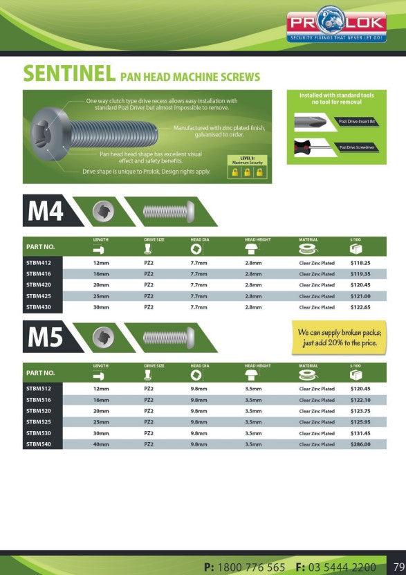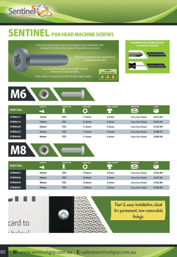 Introducing the unique Sentinel Drive security range of screws, exclusively available through Prolok. Designed with hardened steel, these thread forming screw can tap their own thread into steel up to 10mm thick, with the correct size pilot hole.