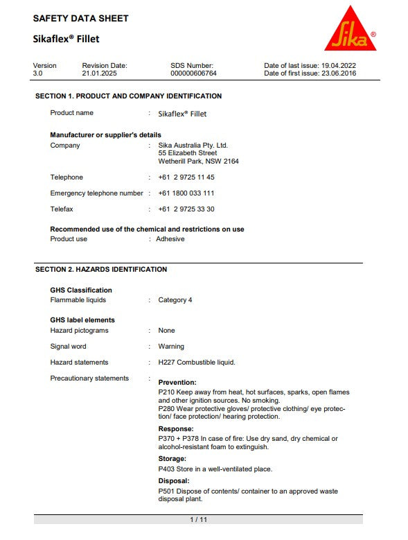 PLEASE NOTE: "Sika Shelf-Life Policy" Sika offers a minimum 3-month shelf-life on all products.