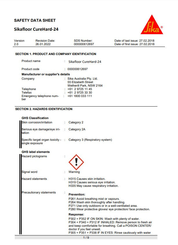 Sikafloor CureHard-24 for use by suitably experienced and trained specialist contractors