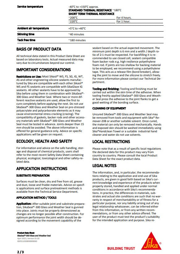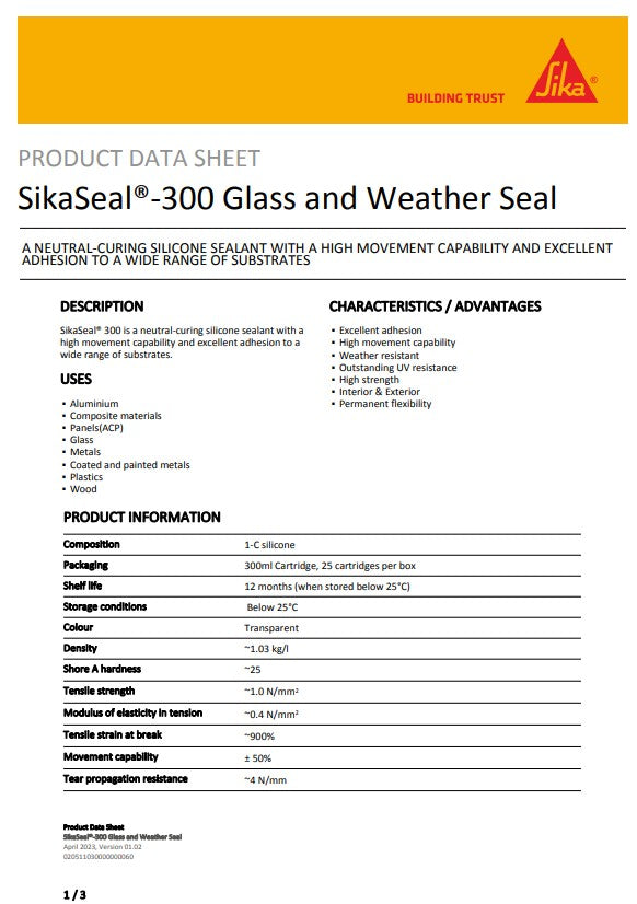 SikaSeal®-300 Glass and Weather Seal - A Neutral-Curing Silicone Sealant With A High Movement Capability And Excellent Adhesion To A Wide Range Of Substrates