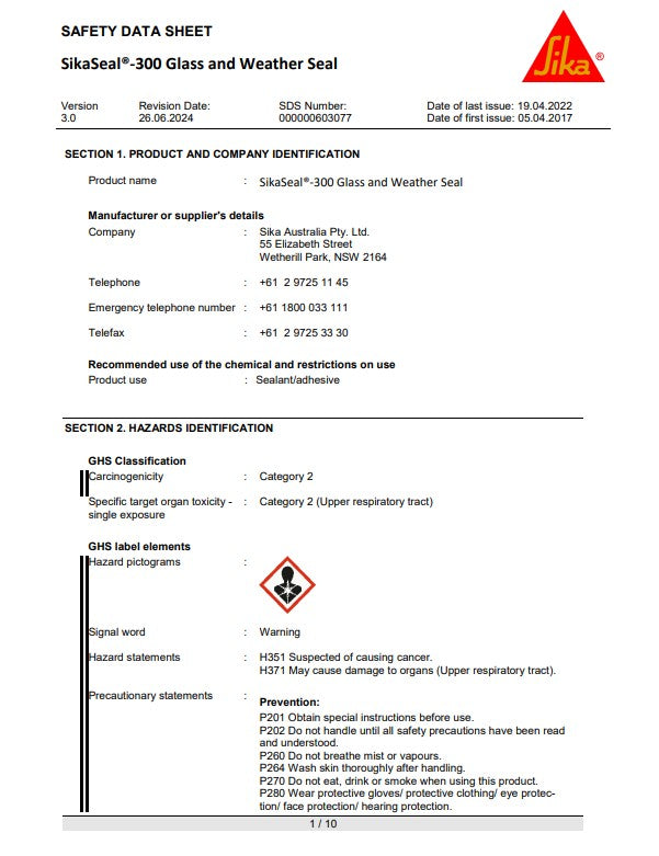 PLEASE NOTE: "Sika Shelf-Life Policy" Sika offers a minimum 3-month shelf-life on all products.