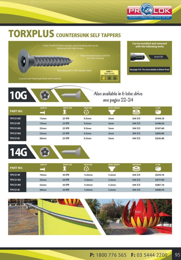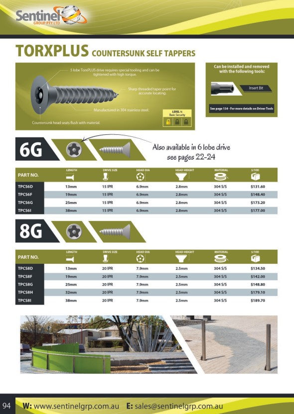 Torx Plus Countersunk 304 Stainless Steel Self Tapping Screw Box of 100 - Multiple Gauges and Lengths