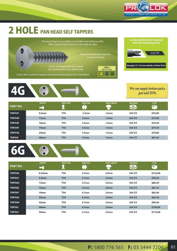 Introducing theTwo-Hole security screws, exclusively available through Prolok, this range of screws features a visually appealing finish, making them ideal for applications where screws are prominently visible. Designed for low to medium torque applications, they combine aesthetics with functionality. Available in multiple dimensions, ensuring you find the perfect fit for your project.