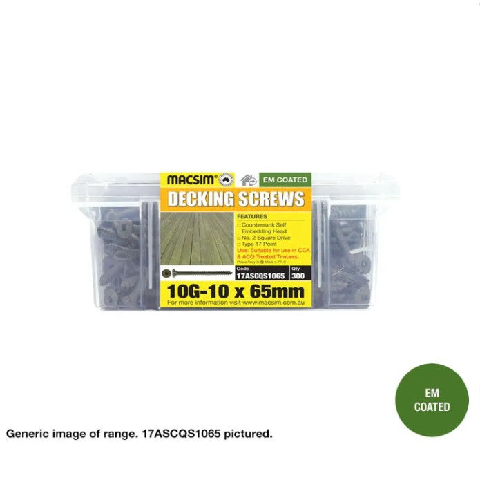 Macsim Type 17 Decking Screws Square Drive EM Coated - 10g x length x box quantity