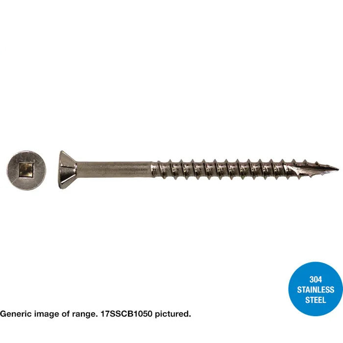 Builders Mate Value Range: Type 17 Square Drive 304 Stainless Steel decking screws - 10g x length x box quantity